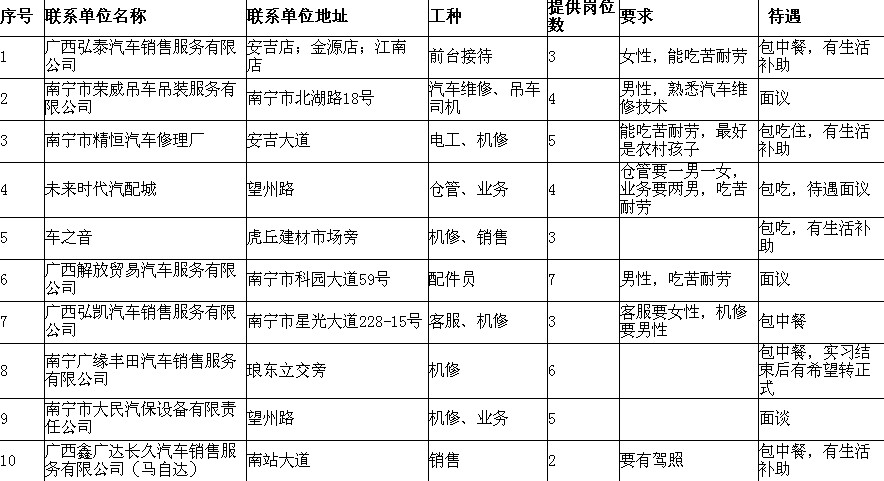 最新2010届顶岗实习用工单位招聘信息一览表