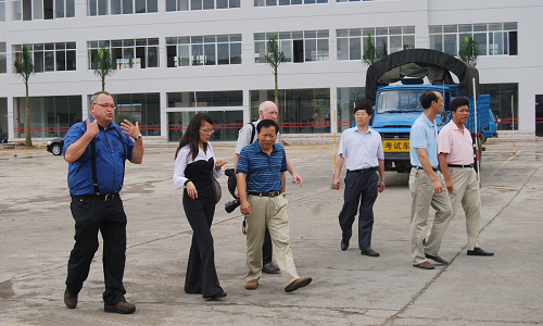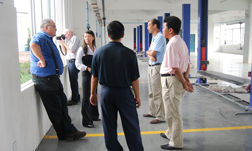 图3孙校长陪同德国专家查看教练车