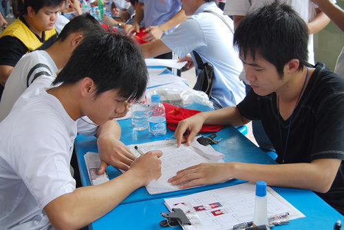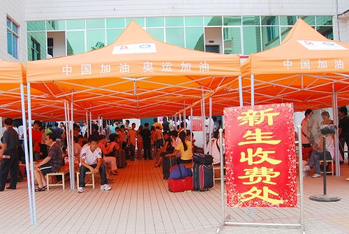 2008830我校迎来2008级新生报到入学的日子。秋日骄阳点燃了校园的热情,在党委书记、校长孙永生同志的带领下,学校230多名职工全体出动,共同迎接来自八桂大地的莘莘学子。当日,美丽的校园没有隆重的欢迎仪式,有的只是全心全意的热情;没有夸张的口号,有的只是无私奉献的心意。学校各项迎新工作开展得井然有序,师生们热情高涨,清晨700至晚上800,学校迎来了1500多名新生。新生蓬勃的朝气和飞扬的青春, 为整个校园注入了新的活力。
