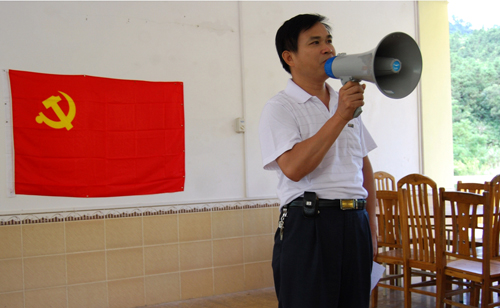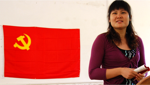 韦薇老师在宣讲先进党员动人事迹