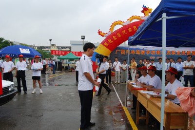 上午10:30,尽管天空飘洒着濛濛细雨,广西首届汽车驾驶培训学校教练员职业技能大赛开幕仪式在广西交通高级技工学校驾驶训练场隆重举行。自治区交通厅廖小波副厅长、自治区劳动和社会保障厅冯振年副厅长等领导以及来自全区14个市的近500名参赛选手和裁判员出席了开幕式。自治区交通厅廖小波副厅长在开幕式上作了重要讲话,希望各参赛选手在竞赛中遵守竞赛规则和纪律,服从指挥,赛出水平、赛出风格、赛出成绩。要求各汽车驾驶培训学校通过本次竞赛,引导和激发全体教练员学法规、练技能、强素质的热情,全面提高全区汽车驾驶培训行业教练员队伍整体素质,推行规范化教学,保证学习培训质量,为社会培养合格的驾驶人员打下坚实的基础。自治区劳动和社会保障厅冯振年副厅长在开幕式上强调,驾驶员培训行业是社会高度关注的热点行业,服务质量的好坏直接关系到道路交通和人民群众生命财产安全,关系到交通行业在政府和人民群众心目中的形象。举行本次技能竞赛是提高驾驶员培训服务质量、促进全区驾驶员培训行业健康发展、营造和谐交通的有力举措,希望通过竞赛,进一步促进和提高全区汽车驾驶学校教练员职业技能水平,涌现出一批技术强、业务精的优秀教练队伍和先进的教学成果。裁判员和参赛选手代表也分别作了发言和宣誓。
