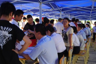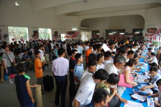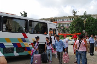 当天清早,阳光灿烂,学校彩旗飘场,来自全区各地的新生就陆续到校报到注册。学校为了做好新生接待工作,成立了校外接待组、校内接待组、收费工作组、后勤组、宣传组、安全保卫组,负责在各个车站迎接新生和在学校内做好报到注册工作。学校接待教师和志愿者着装整齐,热情接待每位新生及家长,秩序井然,10:30---12:00,新生报到达到高潮,蜂拥而至的车辆停满了学校停车场和道路。截止17:30,新生报到人数达到1530人。