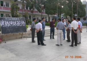 为了加强学校全体师生对消防突发事件的应急处理能力,学校于20061027下午在教学楼开展消防现场演练,各相关部门和人员基本能够按照突发应急预案的要求冷静、有序地处理火灾发生事件。