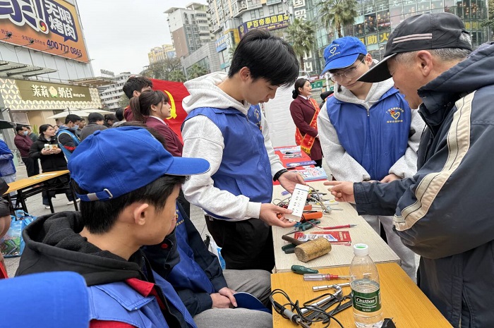 3月5日,信息工程系师生在兴宁区北宁社区党群服务中心开展“公益家电维修”志愿服务活动
