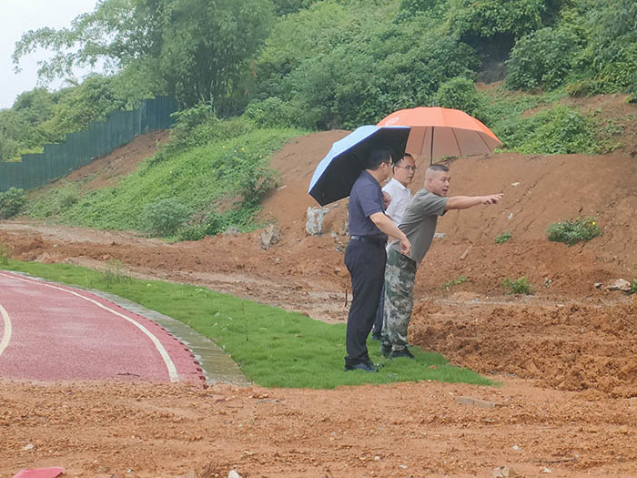 近期,全国各地连降暴雨,我区已进入“龙舟水”防汛关键期。为有效贯彻落实交通运输部关于“高质量开展汛期暑期重大风险隐患排查整治”的部署,5月24日,学院院长赖国秋、副院长章国渺雨中带领安保科、学生工作科、后勤服务科负责人在邕武、长堽、伊岭校区开展防汛检查,排查内涝、山洪、滑坡 、泥石流等次生灾害隐患。此次检查覆盖三个校区的食堂、宿舍、运动场、地下停车场和施工现场多个防汛关键点位。