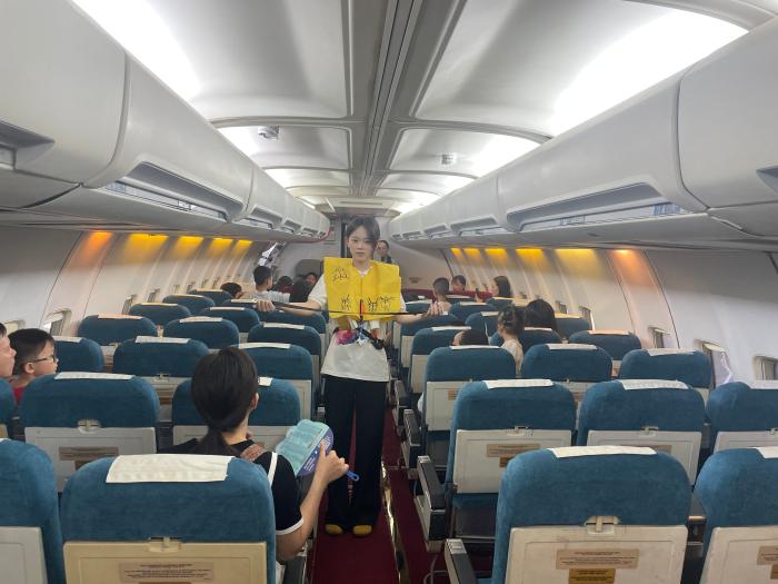孩子们在专业讲师的带领下,不仅深入了解了航空发展史、飞机结构原理等基础知识,还积极踊跃地参加“爱路”知识抢答活动,“小小安检员”、模拟客舱救护和心肺复苏等丰富多样的实践体验活动轮番登场,活动现场热闹非凡。