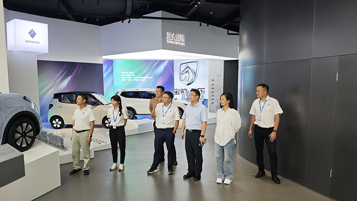 走访参观,感受企业发展活力。调研团队先后参观了总装车间、工匠培训中心与五菱馆。在总装车间,自动化生产流水线高效运转的场景展现了企业先进的制造实力和智造能力;在工匠培训中心,“工匠”们自行研发的安全标识体验台、电枪拧紧操作台等培训设备齐全,在“广西工匠”卢远西的讲解下,精益求精的工匠精神得到具象化展示;在五菱馆里,从品牌发展历程到车型迭代展示,生动诠释了一代代五菱人自强不息、艰苦创业的精神内核。